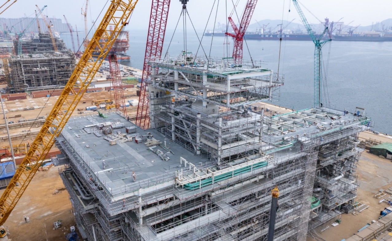 Project highlights:?LNG?Canada?Project is the first project whose core process modules and pipe gallery modules are constructed in an integrated way, maximizing the degree of integration, reducing the workload of on-site installation by half, and facilitating progress control. COOEC has creatively adopted the techniques for dual-system hoisting of heavy deck panels and final assembly and closure using SPMTs and employed the new NBG (no backing gas) welding technique on a large scale for the first time in the world. It also has developed innovative technologies for the lifting and 4D visual construction of super-large structures and greatly improved its capability in integrated construction of super-large LNG modular plants.